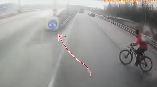 Pie nobrauktuves no ātrgaitas autoceļa, autovadītājam ceļu aizšķērso velosipēdists.