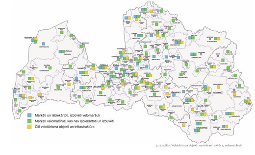 Saskaņā ar pašvaldību un VAS “Latvijas Valsts ceļi” (LVC) sniegto informāciju Latvijā kopumā ir 727 km velosatiksmes infrastruktūras, no kuras 701 km ir pašvaldību pārvaldībā un 26 km –LVC pārziņā.