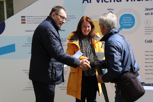 Satiksmes ministrs Tālis Linkaits kopā ar Olaines novada domes priekšsēdētāju Andri Bergu šodien Olainē atklāja ceļojošo vides izstādi "Ar vienu vilcienu rītdienā”, kas iepazīstina iedzīvotājus ar topošo Rail Baltica dzelzceļa līniju.