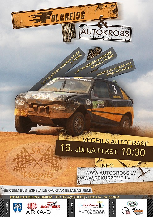 Sestdien, 16. jūlijā pl.10:30 Vecpils autotrasē sāksies LAF Folkreisa Vasaras kausa trešais posms, kas būs arī folkreisa Kurzemes reģiona otrā sacīkste. Tāpat uz starta stāsies arī vairāki autokrosa klases braucēji. Folkreisā galvenā intriga – vai uzvaru sēriju varēs turpināt ar svešu auto braucošais pirmo divu posmu uzvarētājs Raivis Riekstiņš. Ja nē, kurš uzvarēs 34 pieteikto dalībnieku konkurencē?