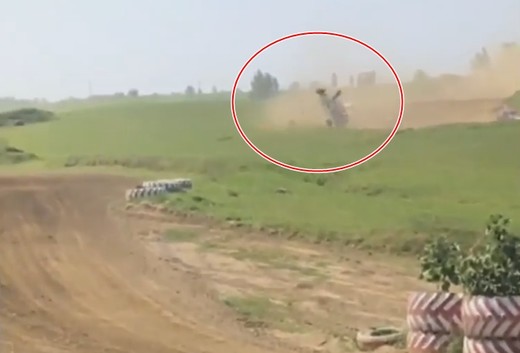 Viens no bagijiem pēc tramplīna neveiksmīgi piezemējas un uzmet vairākus kūleņus, apstājoties tālu ārpus trases.