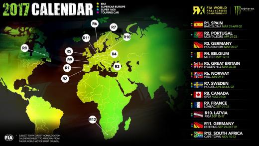 Monster Energy FIA pasaules rallijkrosa čempionāta rīkotāji publicējuši 2017. gada kalendāra projektu.