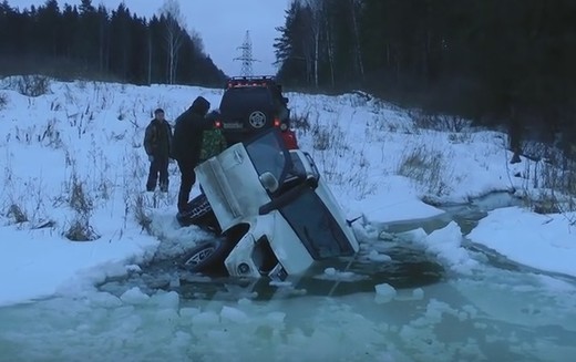 Pirmajām automašīnām izdodas pārvarēt šķērsli, bet "Pajero" ir pārāk smags un ielauž ledu. Sākumā vīriem tas sķiet, kā uzjautrinošs joks par ko vēlāk pasmieties, taču drīz vien izrādās, ka mazais strautiņš ar bebra kunga palīdzību, pārvērties par dziļu un bīstamu dīķi.