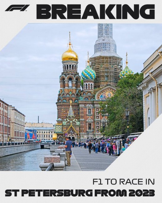 F-1 prezidents Sefano Dominekali atklāja, ka, sākot no 2023.gada, Sočus seriāla kalendārā nomainīs Sanktpēterburga.