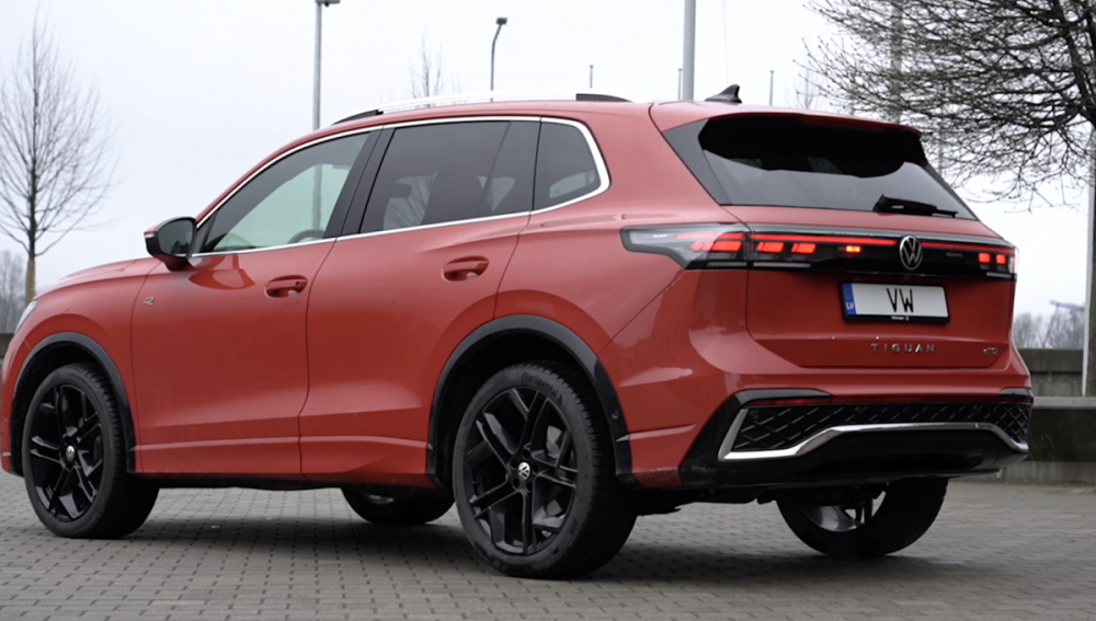 Jaunais Volkswagen Tiguan ir glīts auto. Pat ļoti glīts. Tam ir noslīpēts dizains, mūsdienīgs aprīkojums, laba cena un neliels benzīna motors. Šim Tiguan iekšā ir sporta krēsli un liels ekrāns, bet ārpusē R - Line bamperi.