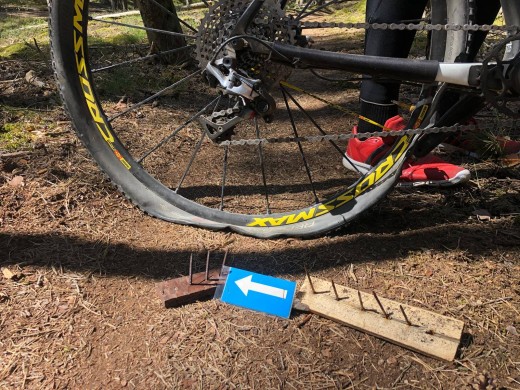 Bīstami un nepieļaujami - Garupes velotakā iebūvēts naglu slazds riteņbraucējiem (+ FOTO)