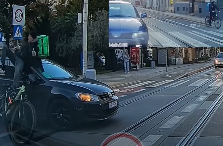 Vadītājs to negaidīja - velosipēdists brauc pretēji kustībai (+ VIDEO)