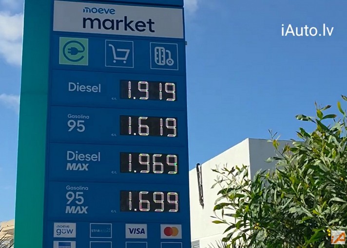Degvielas cenas 2.4.2026 Spānijā uz Ibizas salas: Dīzelis 1.919 un 95 benzīns 1.619 EUR (+ VIDEO)