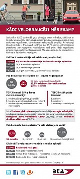 Apdrošināšanas sabiedrība BTA, veicot velobraucēju aptauju, noskaidrojusi, ka 27 % velobraucēju nav nedz autovadītāja, nedz velobraucēja apliecības.