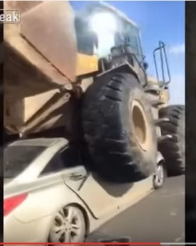 Nav saprotams, ar ko īsti nodarbojas frontālā iekrāvēja vadītājs, kas nemana pretimbraucošo vieglo auto un gandrīz pārbrauc tam pāri.