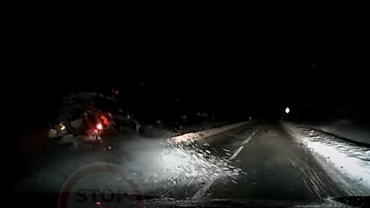 Veicot apdzīšanas manevru, apvidus auto aizķer sastumto sniegu, tiek ievilkts grāvī, bet turpina braukt līdz izdodas tikt atpakaļ uz ceļa.