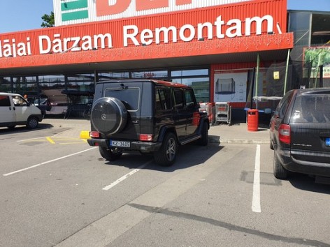 Automašīnas novietošana stāvvietā dažiem autovadītājiem sagādā pamatīgas problēmas, kā šim Mercedes G-klases īpašniekiem, kas savu spēkratu vakar pie Ulmaņa gatves Depo bija atstājis, kā redzams attēlos.