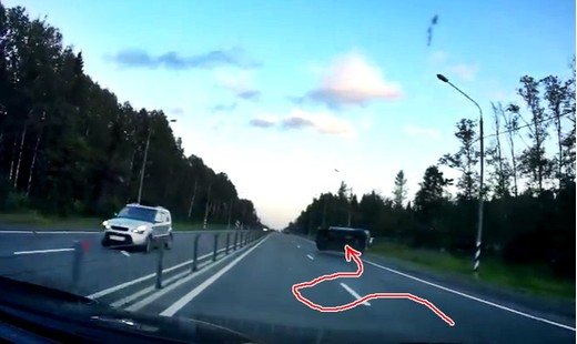 Vadītājs apsteidz pa labo pusi, taču atgriežoties kreisajā joslā, zaudē kontroli pār savu spēkratu un piedzīvo avāriju.