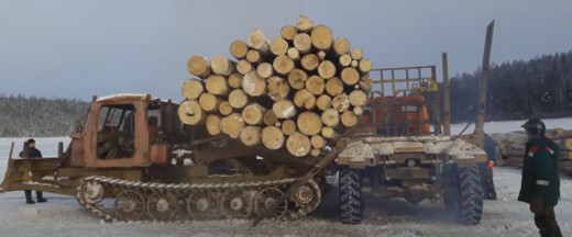 Gluži kā 70.tajos vai pat vēl agrāk uz aizsalušās Angāras vīri taisa plostu - uz tanka bāzes veidotais traktors uzveļ sev plecos visu baļķvedēja kravu un novieto tālāk uz līča ledus. Kad izkusīs ledus, līcī iebrauks velkonis un nogādās plostu "pēc pieraksta".