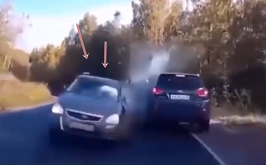 Ar vienu sitienu divus - sānslīdes cienītājs noslauka divus pretimbraucošos (+ VIDEO)