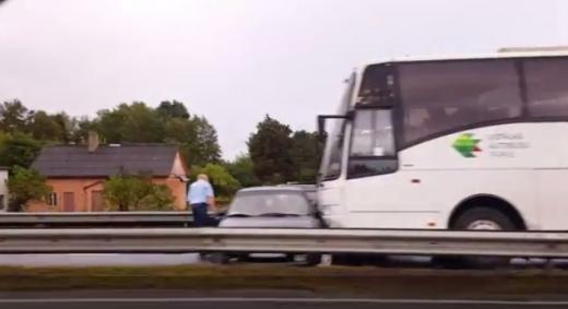 Autobuss iebrauc vieglajam sānos uz Rīgas-Jūrmalas šosejas (+ video)