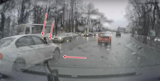 Autovadītāja ar "BMW" un tramvaja sliedes (+ video)