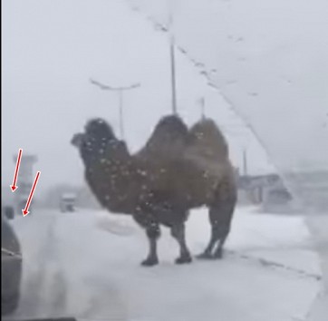 Eksotiskais dzīvnieks, kas negaidot uzrodas ielas malā Krievijas pilsētā Kurgānā, dažiem autobraucējiem sagādā nepatīkamu pārsteigumu.