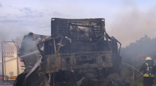 Lai kā glābēji centās apdzēst liesmojošās mašīnas, pēdējā smagsvara šoferi neizdevās izvilkt no deformētās kabīnes un viņš gāja bojā sadegot.