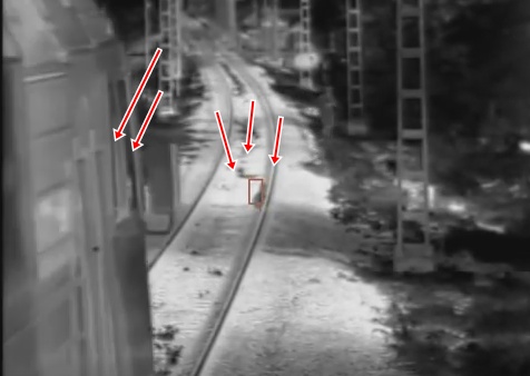 Nakts redzamības kamera fiksējusi dramatiskus notikumus uz vilciena sliedēm kaut kur Krievijā - bērns, kas acīmredzot aizmaldījies no saviem vecākiem, nesaprot cik bīstamā vietā nokļuvis.