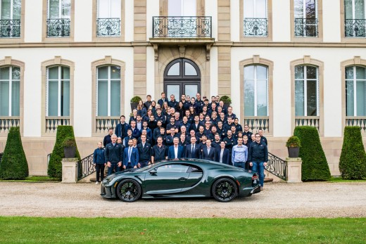 Bugatti rūpnīcas kolektīvs sanācis kopā, lai iemūžinātu sevi pie Chiron četrsimtā eksemplāra. Līdz modeļa dzīves cikla beigām jāizgatavo vēl 100 varenauto.