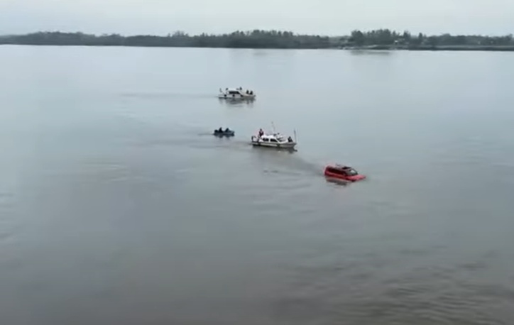 Chery krosovers Jetour Zonghing G700 šķērsojis Jandzi upi vietā, kur tās platums sasniedz aptuveni 1,5 kilometrus.
