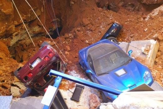 Bezprecedenta gadījums noticis Corvette Nacionālajā muzejā (National Corvette Museum) Boulingrīnas pilsētā Kentuki štatā ASV, kur, iebrūkot grīdai, pazemē iegāzušies vairāki izstādes eksponāti.