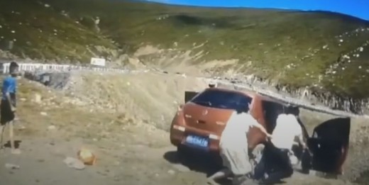 Skaisto skatu vērotāji kaut kur augstu kalnos aizmirst par stāvbremzi. Divi cilvēki no mašīnas pagūst izlēkt, trešais nē.