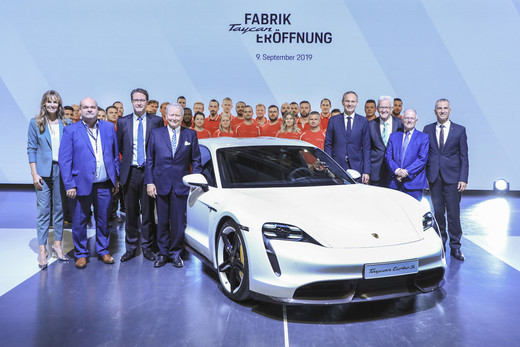320 viesu no politikas, uzņēmējdarbības un mediju aprindām klātbūtnē Porsche ir atvēris rūpnīcu pilnīgi elektriskajiem Taycan.