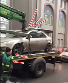 Aculiecinieks Maskavā nofilmējis, kā evakuatora operators, iespējams, vēl svētku noskaņojumā, neveikli darbojoties ar hidrauliku, ieliec mašīnas jumtu un saplēš vējstiklu.