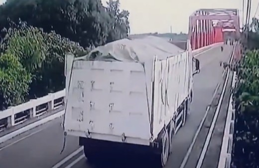 Video novērošanas kameras fiksē brīdi, kad tilta konstrukcija Filipīnās neiztur pārkrautas kravas automašīnas svaru.