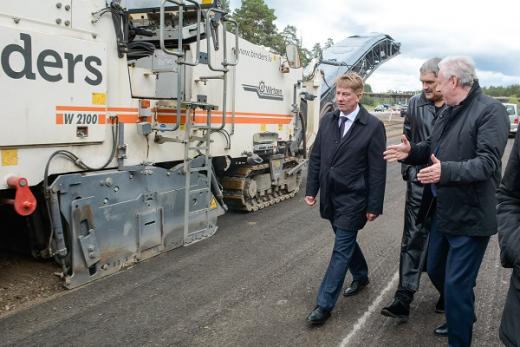Satiksmes ministrs Anrijs Matīss, VAS Latvijas Valsts ceļi valdes priekšsēdētājs Jānis Lange un citi šodien apsekoja būvdarbus uz Siguldas šosejas (A2).