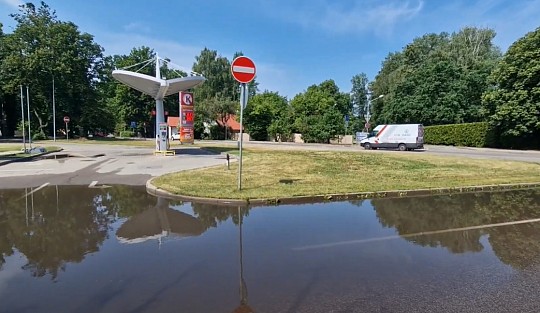 Jūrmalā nolijis lietus un mazais ezeriņš Kalēju ielā pie Circle degvielas uzpildes stacijas atkal savā vietā.