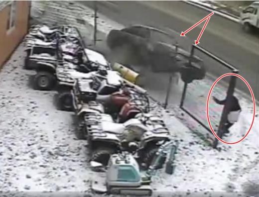 Zibenīga reakcija paglābj gājēju no drošas nāves (skatīt no 1:28).