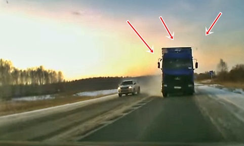 Kravas auto priekšā no sānceļa gluži negaidot izgriežas apvidus auto, kuru glābjot, "fūre" iestūrē pretējā joslā.