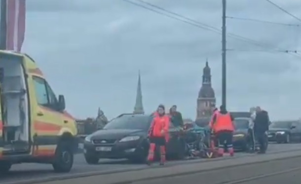 Iet bojā motocikla vadītājs ceļu satiksmes negadījumā uz Akmens tilta - 11.04.2024 (+ VIDEO)