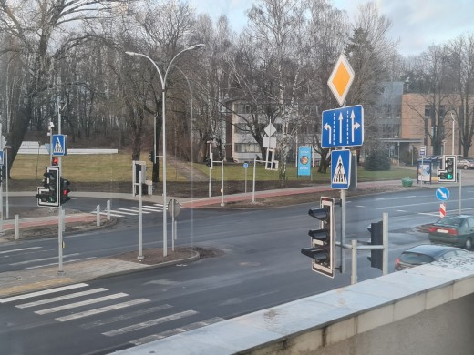 iAuto apskata šo objektu un pārliecinās, ka jaunais luksofors nespēj pretoties vēja brāzmām un ir sagriezies, oktobrī uzkrāsotās gājēju pārejas līnijas ir nodilušas, bet uzliktais bruģis vietām ir iegrimis un pēc remonta atstātie gruži turpat vien mētājas.