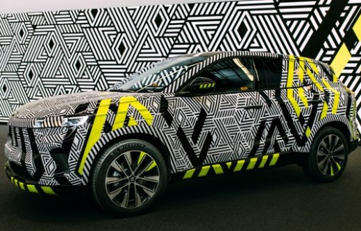 Fransuā veidoja arī jaunās Megane E-Tech prezentācijas kamuflāžu. Nepieciešamība apslēpt automobiļa līnijas nebija tik liela, kā Austral gadījumā. Arī grafiskajai tēmai nebija tāds pats mērogs. Vairāk tika apspēlēta pakāpeniskā pāreja no melnā uz balto krāsu automobiļa aizmugurē.