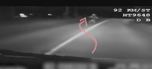 Dzenoties pakaļ pārgalvīgajam motocikla vadītājam, vairākkārtīgi dots rīkojums apstāties, taču tā vadītājs nereaģēja un centās nogriezties uz dzelzceļa sliedēm, kur ar automašīnu nav iespējams izbraukt, taču neveiksmīgi. Jaunietis nenovaldīja stūri, ietriecās vienā no ceļa zīmēm, pēc kā pielēca kājās un centās iedarbināt motoru, taču policijas darbinieks paspēja pieskriet pie pārkāpēja un viņu aizturēja. Vadītājs negadījumā nebija guvis miesas bojājumus. Pārbaudot vadītāja datus, konstatēts, ka viņš ir 18 gadus vecs jaunietis un viņam nav atbilstošas vadītāja apliecības. Savukārt pārbaudot transportlīdzekļa datus, noskaidrots, ka tas aprīkots ar cita spēkrata numura zīmi.