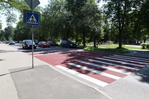 Jūrmalā, Mellužu prospektā pie Mellužu estrādes izveidota jauna veida paaugstinātas drošības gājēju pāreja.