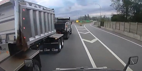Kravinieka šoferis Kanādā sastopas ar bīstamu rīcību no kolēģa puses.