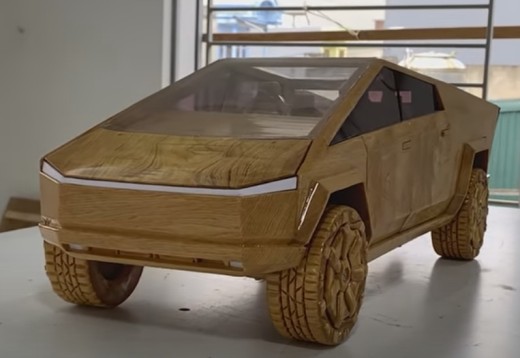 Kamēr elektriskais Cybertruck savu startu atliek atkal un atkal, meistari no Woodworking Art negaida un izmantojot savas prasmes, izgatavojuši to no koka.