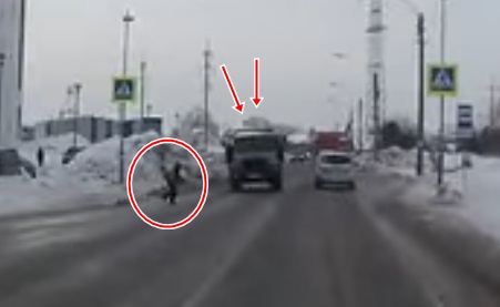 Kravas auto gandrīz uzbrauc bērnam (+ video)