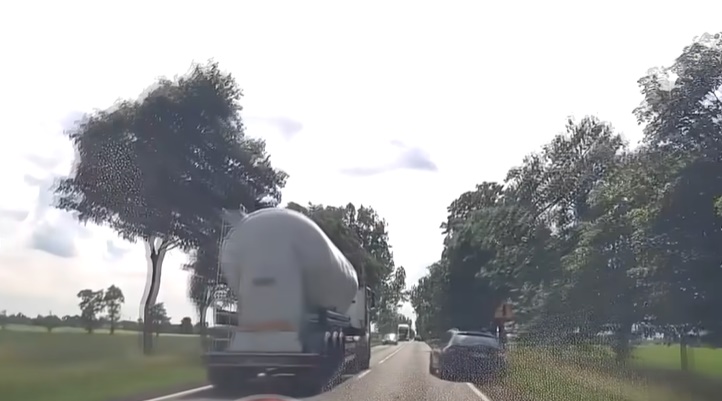 Kravas auto neapdomīgi apdzen, vieglais auto gandrīz zaudē vadību (+ VIDEO)
