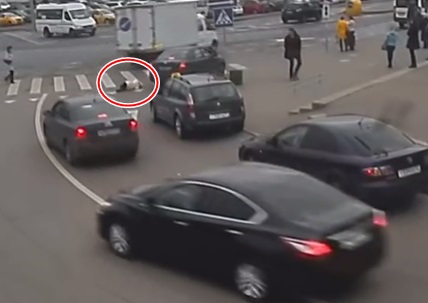 Vadītājs aptur mašīnu pie gājēju pārejas un izlaiž sievieti, kura pat nepagriežot galvu, dodas pāri ielai un ietriecas kravas furgona "Gazel" sānos. Šoferis to nemana un no notikuma vietas aizbrauc.
