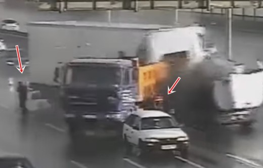 Kravas vilcējs uzbrauc stāvošam Kamaz (+ VIDEO)