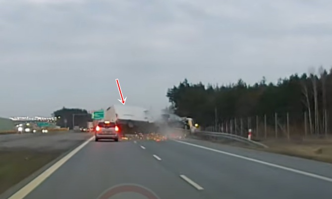Piegādes furgons uztriecas auto evakuatoram, pēdējai automašīnai, kas atradās satiksmes negadījuma rezultātā izveidojušās sastrēguma "astē".