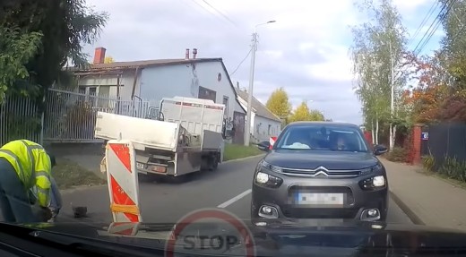 Divi autovadītāji sastopas ceļa remonta vietā, un vienam no viņiem būs jāpiekāpjas.