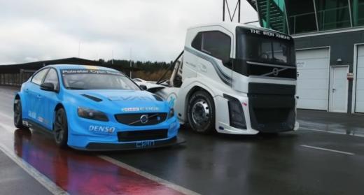 Kurš ātrāks? - Volvo salīdzina 400 Zs S60 sedanu ar 2400 Zs kravinieku (+video)