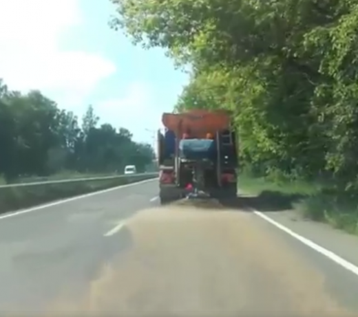 Latvijā arī vasarā kaisa asfaltu ar smiltīm (+ video)